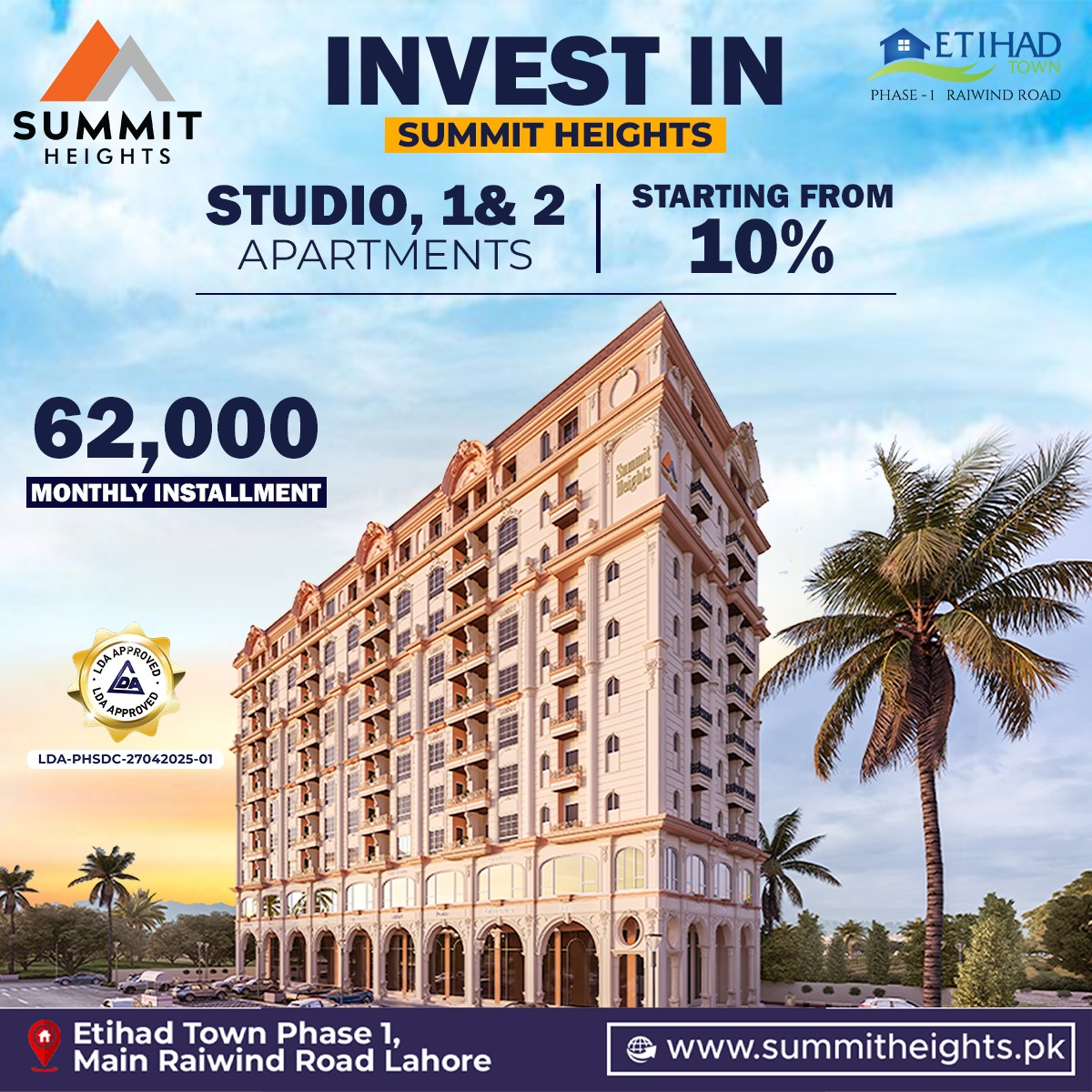 Our vision at TheMalikAnwaar.com is to connect buyers with modern, reliable, and value-driven property developments across Lahore. Summit Heights represents the shift toward vertical living, a lifestyle trend driven by rising real estate demands and shrinking land availability in major cities. We aim to guide clients with transparent details, on-ground project insights, professional consultancy, and secure investment handling. With Summit Heights, we help you step into a future where comfort, location, and modern facilities come together to shape a better way of living.